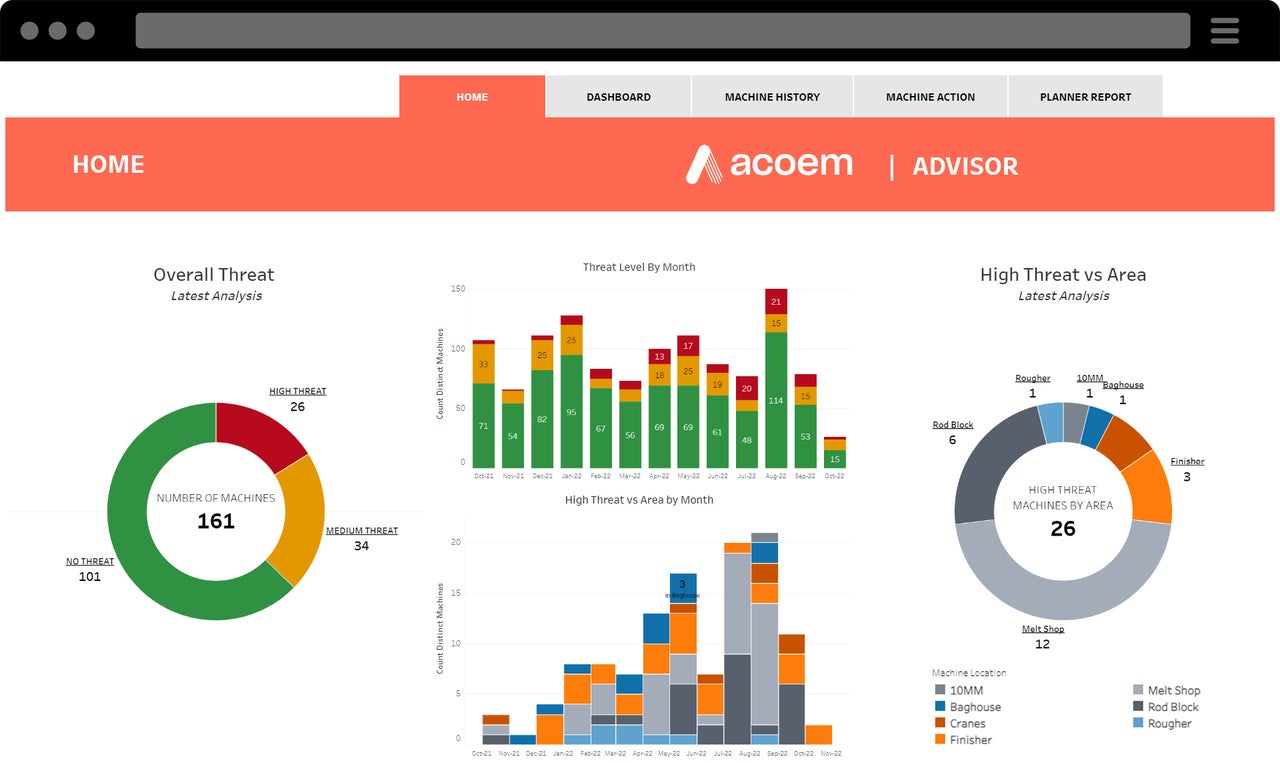 The results of each machinery analysis are immediately available to view in the Advisor Dashboard , our secure, web-based, data visualization tool. We advise on the how, what, and when to fix each problem.